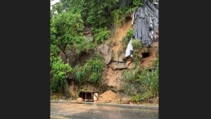 Em Cachoeiro de Itapemirim, a Avenida Jerônimo Ribeiro, que corta praticamente todo o bairro Amarelo, foi integralmente interditada às 13h20 desta segunda-feira (5), devido ao risco iminente de deslizamento de uma grande rocha, oferecendo perigo material e à vida de pedestres e motoristas que circulam pelo local.