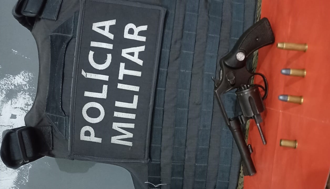 Com o homem detido foi apreendido o revólver calibre 38 mm, marca Taurus, com 3 munições intactas e uma deflagrada. Ele tem 38 anos e residia no bairro Rubem Braga.