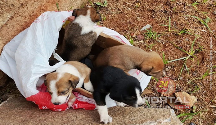 Durante a fiscalização, os militares encontraram quatro filhotes de cachorro abandonados, acondicionados dentro de uma caixa, em local sem qualquer condição mínima de sobrevivência. A situação levantou indícios claros de negligência e risco à vida dos animais.