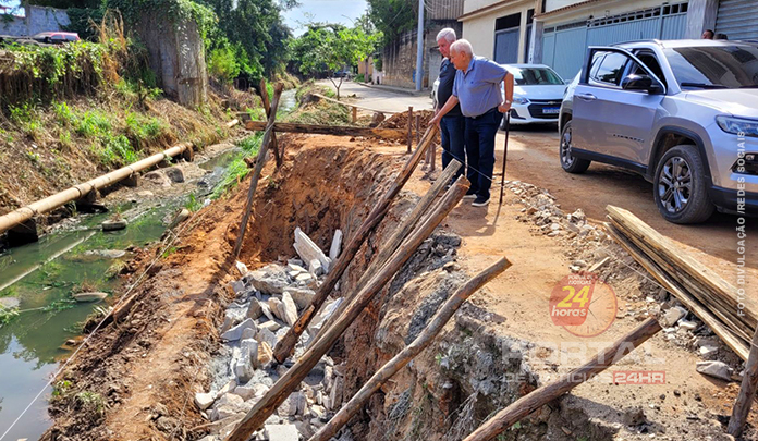 Além da limpeza, a administração municipal está executando, com recursos próprios, obras de contenção das encostas por meio da construção de muros em pontos críticos da via. As intervenções visam garantir mais segurança para pedestres e motoristas que trafegam pelo local, prevenindo deslizamentos e outros riscos associados ao desgaste das margens do córrego.