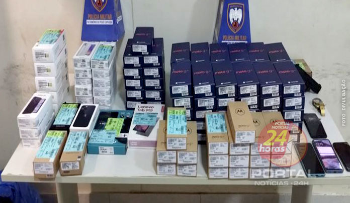 A ocorrência foi registrada por volta das 13h de ontem, terça-feira (5), durante a descarga de mercadorias, quando os funcionários foram surpreendidos pelos criminosos, que levaram 115 aparelhos eletrônicos, entre celulares, tablets e notebooks.