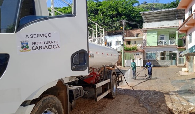 Foram encaminhados dois caminhões-pipas e um caminhão-torpedo para fazer a limpeza da rede de drenagem. “Nossas equipes estão ajudando a lavar a cidade com desinfetante e desobstruindo as redes de drenagem”, destacou Marcos Aranda, secretário de Serviços de Cariacica, que liderou as equipes em nome do prefeito Euclério Sampaio.