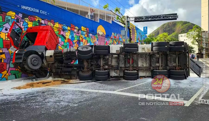 Uma carreta carregada com ureia, um tipo de fertilizante, tombou por volta de 3h terça-feira (28) na Avenida Vitória, na altura da Curva do Saldanha, em Vitória (ES). O motorista, que seguia sozinho no veículo no sentido Jucutuquara, foi socorrido com ferimentos leves e encaminhado para o Hospital Estadual de Urgência e Emergência, o São Lucas.