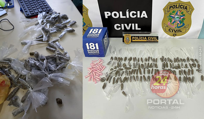 A Polícia Civil do Espírito Santo (PCES), por meio da Delegacia de Polícia (DP) de João Neiva-ES, realizou, nessa segunda-feira (03), a apreensão de uma adolescente de 16 anos, investigada por ato infracional análogo ao crime de tráfico de drogas, no bairro Monte Líbano, no município. Durante a ação, foram apreendidos 103 buchas de maconha e 29 pinos de cocaína.