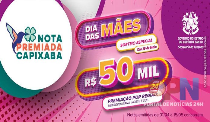 ![[Dia das Mães] Nota Premiada Capixaba vai distribuir prêmio de R$ 50 mil por região](https://portaldenoticias24horas.com.br/wp-content/uploads/2025/05/sdgsdhs.jpg)
