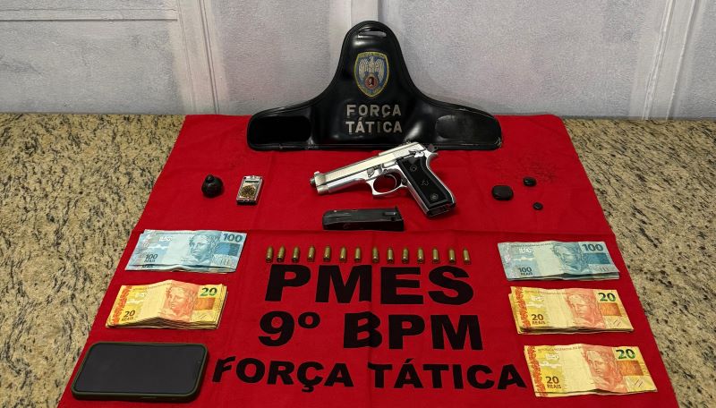 De posse dessas informações, foi realizada uma campanha pelas equipes de Força Tática do 9BPM, onde conseguiram abordar o denunciado e, após diligências, apreender os seguintes materiais: