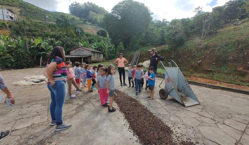 Uma das ações que despertou o interesse das crianças foi a entrega de mudas de café, incentivando-as a cultivar a planta em suas casas e compreender melhor o processo de cultivo.