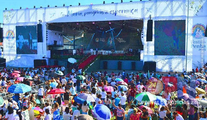 Um público estimado em 2,7 milhões de pessoas participou da 455ª edição da Festa da Penha, realizada de 20 de abril até esta segunda-feira (28). Nessa segunda-feira (28), dia da padroeira do Espírito Santo, a tradicional missa de encerramento reuniu 250 mil fiéis no Parque da Prainha, em Vila Velha, segundo os números divulgados pela organização do evento.
