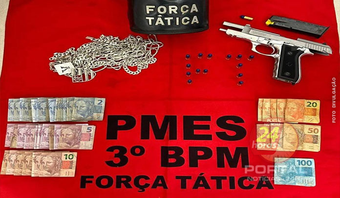 Em outra ação, na quarta-feira, os policiais receberam informações do serviço de inteligência de que um homem estaria no local conhecido por Lagoa, no bairro São Miguel, ostentando uma arma de fogo. Durante o cerco policial, o suspeito foi detido em um dos becos e com ele foi apreendida uma pistola calibre 9mm, 15 munições e 499 reais em espécie.