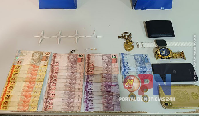 Por volta das 15h, outra equipe policial realizava patrulhamento no bairro Bela Vista, quando avistou um indivíduo em atitude suspeita. Ao perceber a aproximação da viatura, o homem tentou se desfazer de um invólucro contendo 18 pedras de crack. Com ele ainda foram encontrados R$ 197,00 em espécie. Após buscas nas imediações, os policiais localizaram uma sacola preta com mais seis pinos de cocaína. O suspeito foi detido e encaminhado à delegacia.