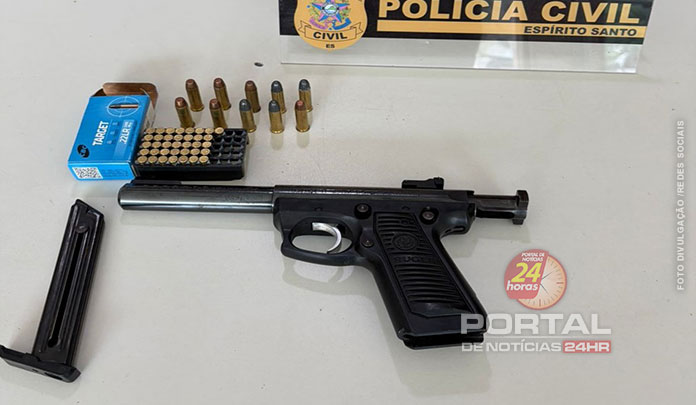 A Polícia Civil do Espírito Santo (PCES), por meio da Delegacia Especializada de Homicídios e Proteção à Pessoa (DHPP) de Venda Nova do Imigrante, com apoio da Delegacia de Polícia (DP) de Conceição de Castelo, prendeu, na manhã do último sábado (15), um homem de 46 anos e apreendeu uma arma de fogo e munições. A ação ocorreu no bairro Tapera, em Venda Nova do Imigrante.