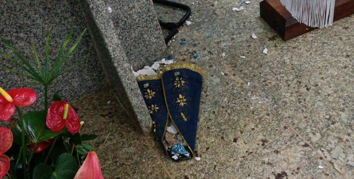 Para ter acesso à parte interna da igreja, a porta foi danificada. Na capela, as imagens das santas foram jogadas ao chão. “As imagens da Padroeira da Comunidade, Nossa Senhora de Lourdes, da Padroeira do Brasil, Nossa Senhora Aparecida, e de Santa Luzia foram totalmente destruídas. Contudo, as demais imagens não foram atacadas. Fato curioso foi que somente as imagens das santas mulheres foram vandalizadas”, relata um trecho da nota.