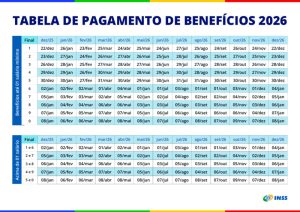 Aposentados, pensionistas e beneficiários de auxílios do Instituto Nacional do Seguro Social (INSS) já podem consultar o calendário oficial de pagamentos dos benefícios referente ao ano de 2026.