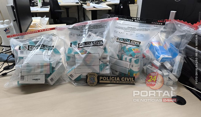 Entre os materiais apreendidos estavam mochilas, utensílios domésticos, produtos diversos e, principalmente, uma expressiva quantidade de medicamentos, muitos deles de alto valor comercial e provenientes do mesmo laboratório, o que indica a possibilidade de furto ou roubo em larga escala na cadeia de fabricação ou distribuição.