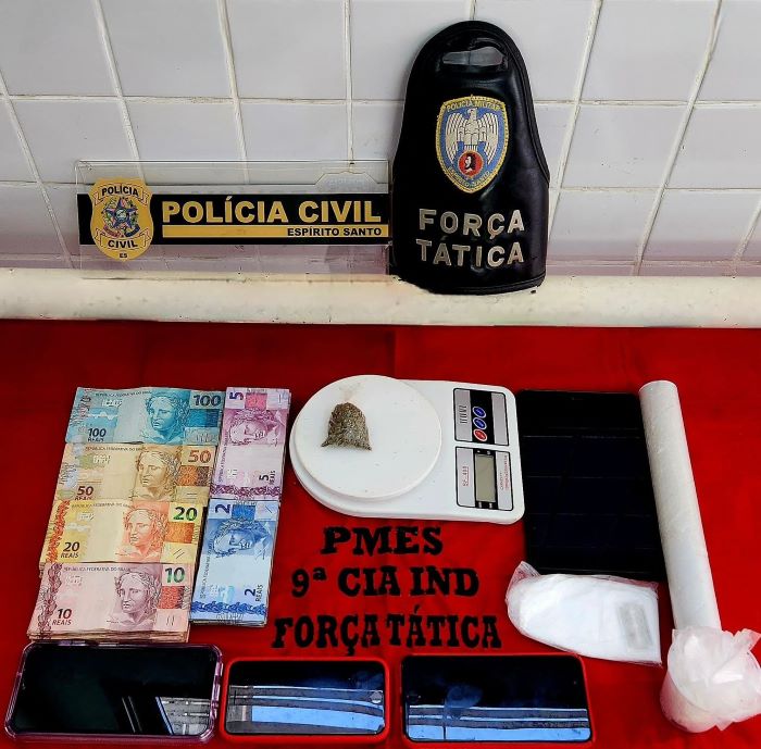 Nas buscas foram apreendidos maconha, crack, cocaína, balança de precisão, material para embalar drogas e R$ 8.600,00, além da prisão de quatro homens numa casa na localidade de Afonso, em Itapemirim, bem como um homem e uma mulher no imóvel localizado sobre o bar, que servia de “boca de fumo” da organização. Totalizando foram presas seis pessoas.