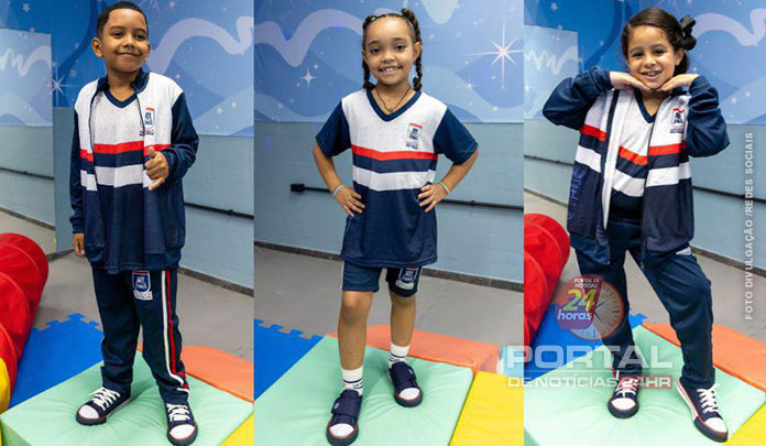 O conjunto de uniforme para cada aluno contém camisa, camiseta regata, bermuda, meia, tênis e agasalho completo (com jaqueta e calça comprida); e as meninas também ganham short-saia. As crianças da Educação Infantil recebem o mesmo kit, além de uma mochila de rodinhas.
