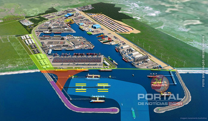 As obras foram iniciadas em dezembro de 2024, com investimentos de aproximadamente R$ 2,5 bilhões. Na primeira fase, já em execução, serão aplicados US$ 470 milhões, contemplando 54 berços de atracação e três bacias de evolução. O projeto ainda prevê terminais específicos para granéis agrícolas, contêineres, petróleo e gás, fertilizantes e carga geral.