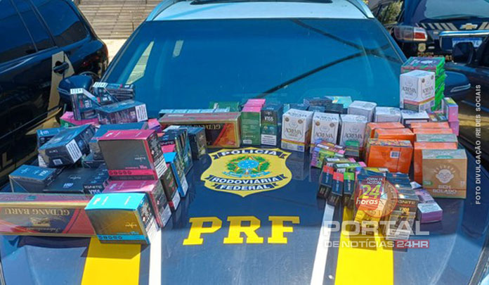 A ocorrência foi registrada por volta das 10h35, quando uma equipe da PRF abordou um veículo Hyundai HB20, que retornava de viagem ao estado de São Paulo. Durante a fiscalização veicular e a verificação dos compartimentos de carga, os policiais localizaram, no porta-malas, diversas sacolas contendo 600 maços de cigarros de origem paraguaia e 306 dispositivos eletrônicos para fumar (DEF), popularmente conhecidos como cigarros eletrônicos, de diversas marcas.