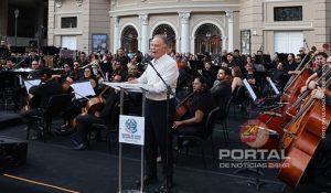 “Noventa e nove anos depois de sua inauguração, estamos reinaugurando o Theatro Carlos Gomes totalmente restaurado. Este é um equipamento importantíssimo para a cultura do nosso Estado. Resgatamos um espaço que sempre foi o centro cultural do Espírito Santo e, assim, colocamos fim a um problema histórico, que era manter esse teatro fechado. A partir de agora, teremos uma programação cultural forte e vamos fortalecer ainda mais o Centro da nossa Capital”, afirmou o governador Casagrande, acompanhado pela primeira-dama do Estado, Maria Virginia.